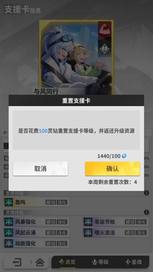 新增了支援卡重置功能,现在可以花费灵钻将支援卡等级重置,并返还消耗的资源。