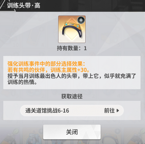 高级训练头带效果:若有共鸣的伙伴,训练主属性+30