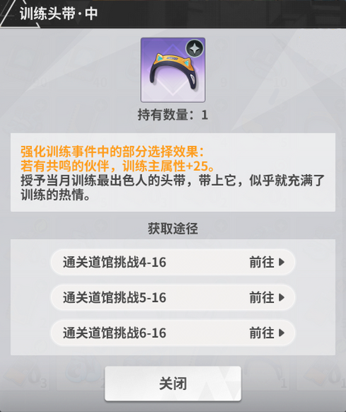 中级训练头带效果:若有共鸣的伙伴,训练主属性+25