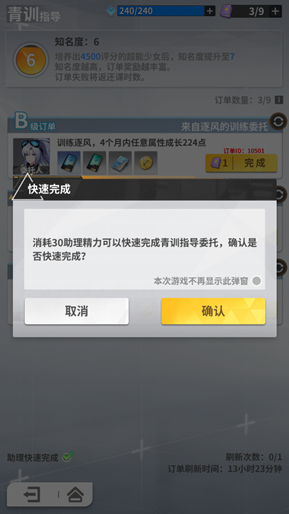 【青训指导】新增快速完成功能,消耗助理精力快速获得奖励。