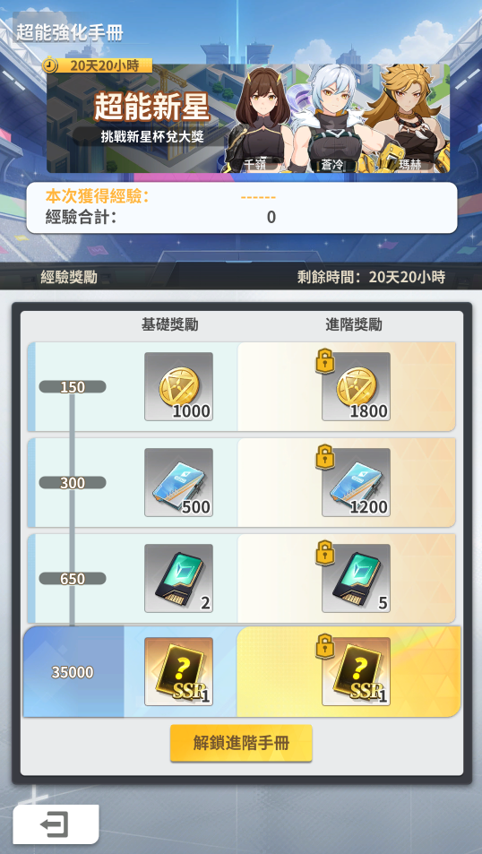 ・エスパー強化マニュアル開始:新星杯クリアで経験値獲得→レベルアップ報酬入手(上級訓練マニュアル購入で追加報酬獲得可能)