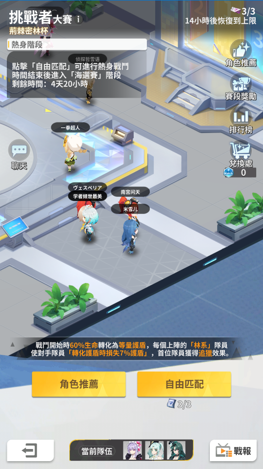 1日3回出場可能(1回あたり5連戦、同グループ内マッチング)