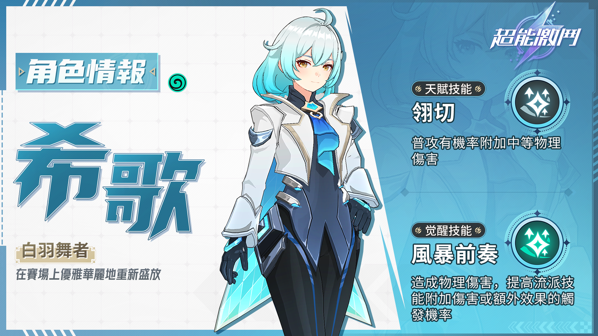 作為一位風系敏捷型的靈能少女,希歌以其迅捷又不失優雅的動作和精準的攻擊在賽場上馳騁,每次攻擊都可能帶來額外的物理傷害,如同風中的利刃,無聲無息卻致命無比。